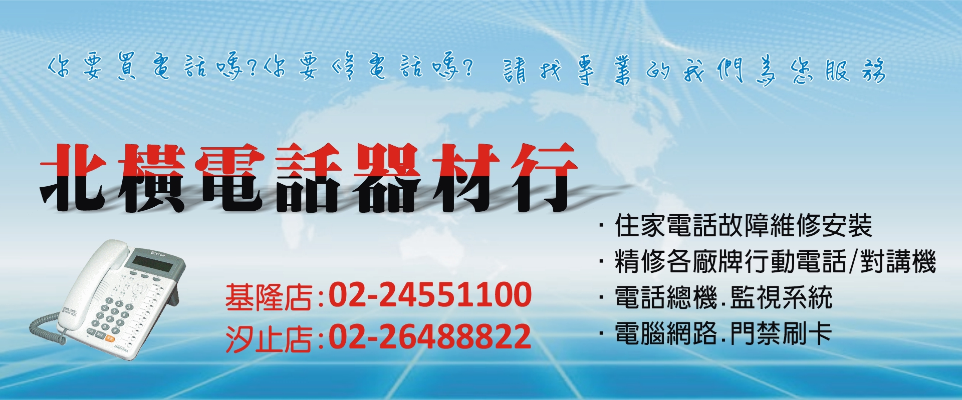 北橫電話器材行 - 總機安裝、監視系統、防盜系統、對講機、門禁系統